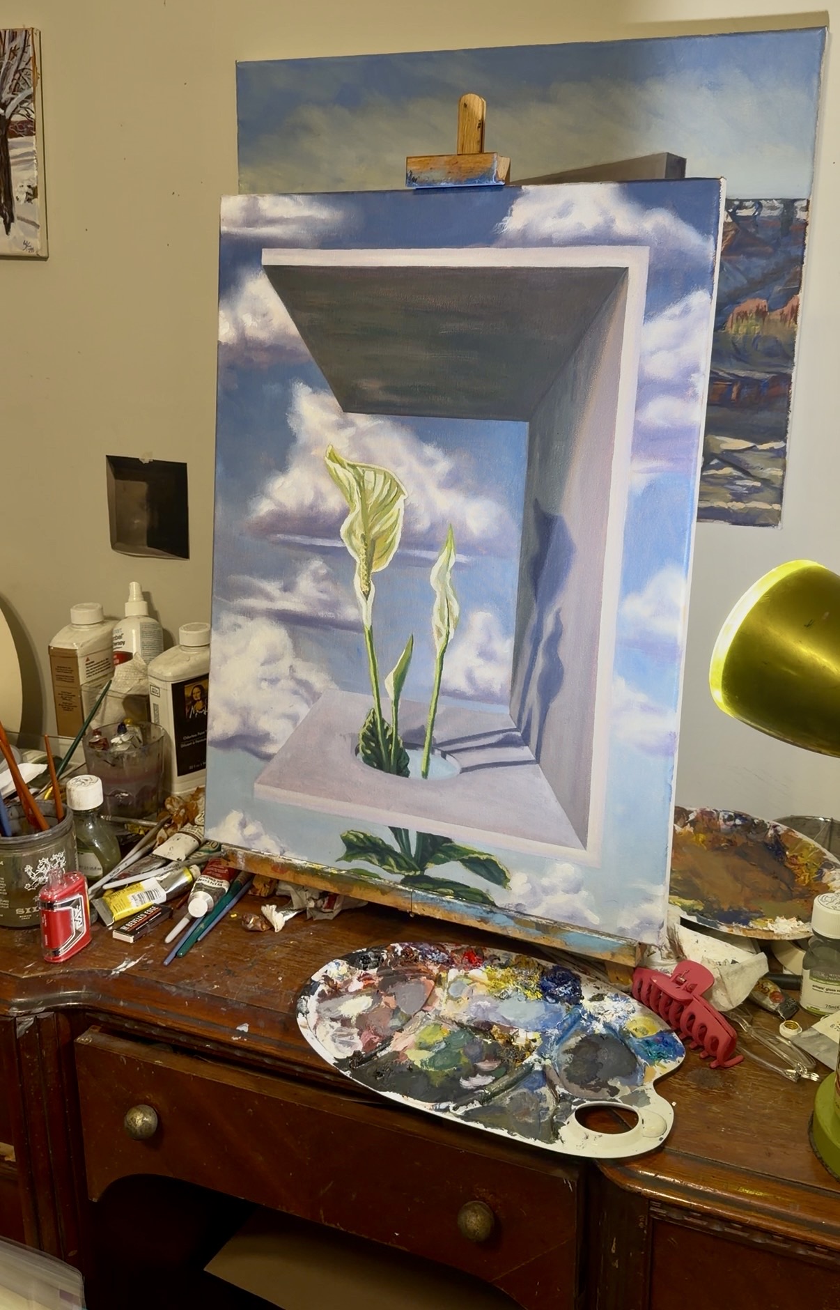 Most definitely! My name is S. Christopher Kuithe (pronounced key-thee), a self-taught surrealist and plein air artist based in Nashville, TN. My creative practice lives at the intersection of dream and earth – where the quiet pulse of real places meets the uncanny whisper of the imagination. I work mainly in oil, acrylic, graphite, and oil pastels. My work ranges from surrealist landscapes to plein air, florals to architectural concrete structures.