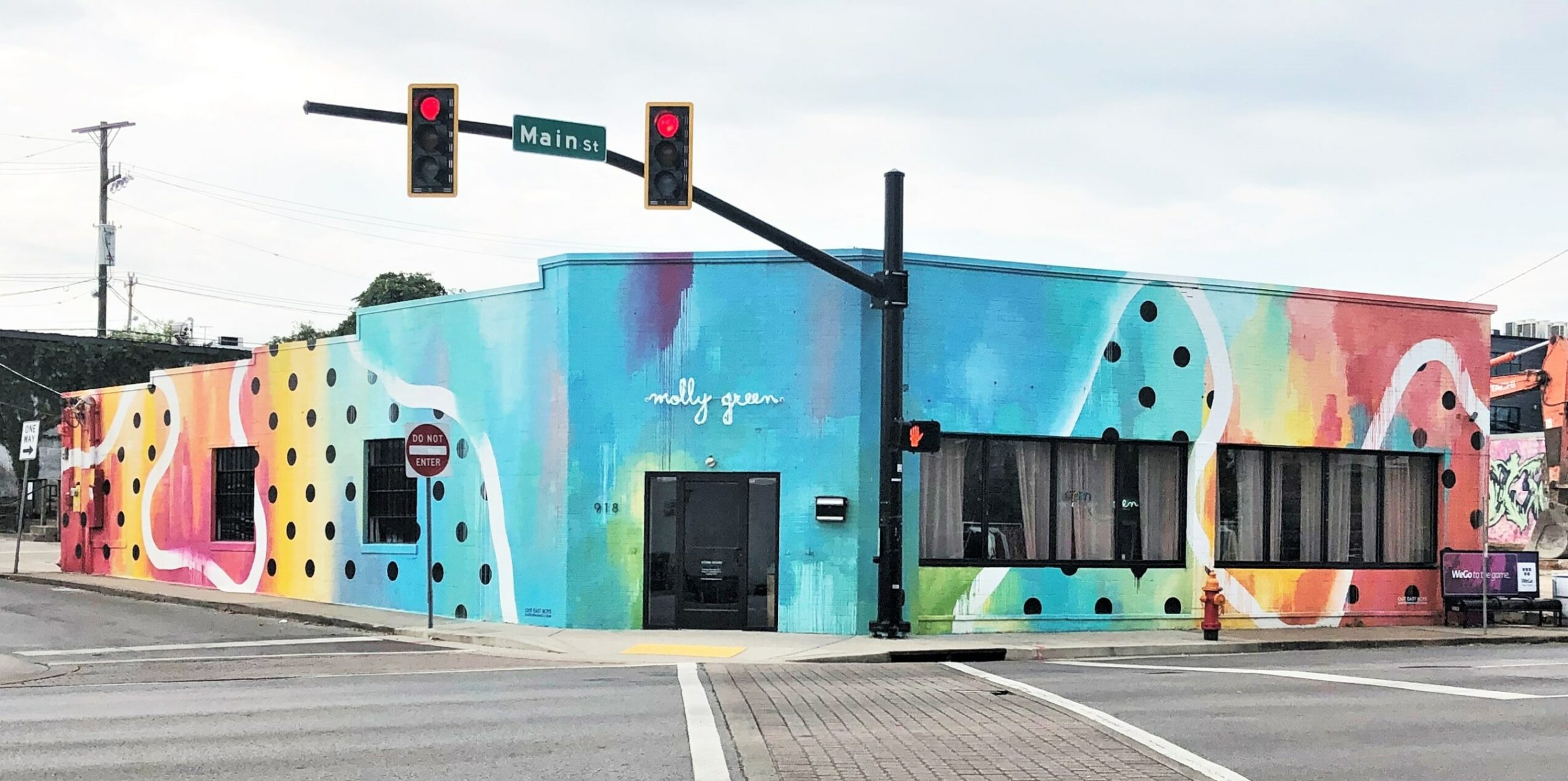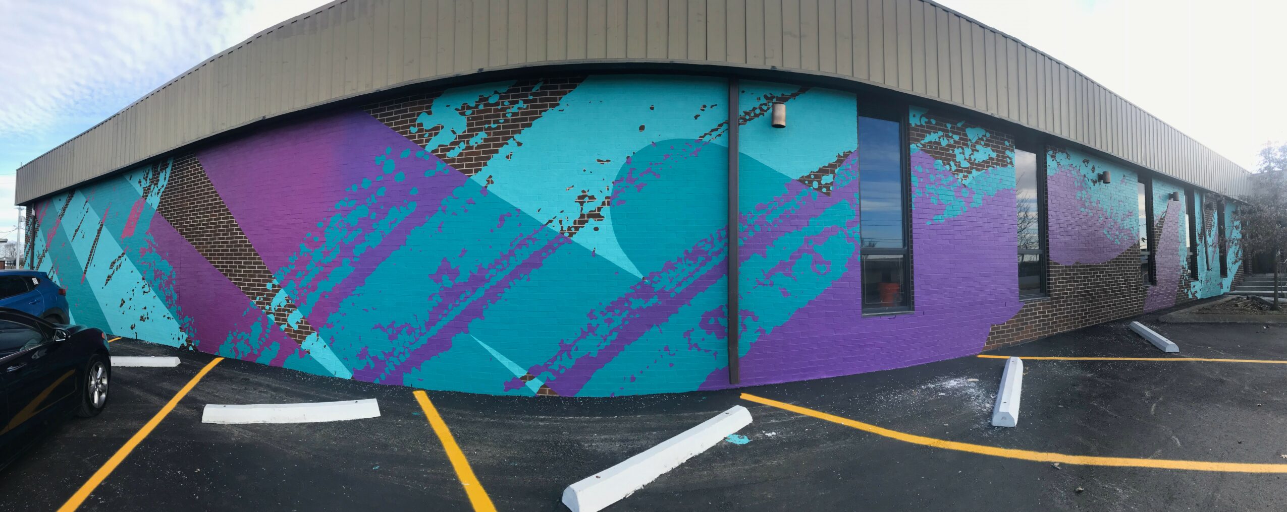 I am known for large scale murals! Stylistically, I would maybe say I’m a chameleon. I am commissioned by different people to do many different things. The type of job or client dictates what I do since those are the things that pay the bills. I am a sign-painter as well as a muralist. Often times, I am just recreating lettering or logos for small business and that is dictated by their branding. Maybe they have a designer that created a bunch of graphics or a logo and I’m just translating that to the real space given. That being said typography is a big specialty for me as I really enjoy the study of letter structures and fonts. The rest of the time I am painting murals. I have to act as a filter for what the clients ideas are or what their vision is and try and work with them to make that happen. Often times I will try to influence and steer them in the right direction so that things work visually and don’t become convoluted. I get ideas from the client (if they have any) and combine them with my own to create a work of art specific to the space provided. I also specialize in form and color and am largely influenced by the graffiti/”street art” aesthetic. I am too ADHD to have one style and just stick to it but my personal works are mostly abstract. They have a lot of motion as well as very vibrant color schemes that often play with ideas of color theory and utilize the architecture of the building to create compositions. I would pride myself in the level of detail and quality that goes into every piece.