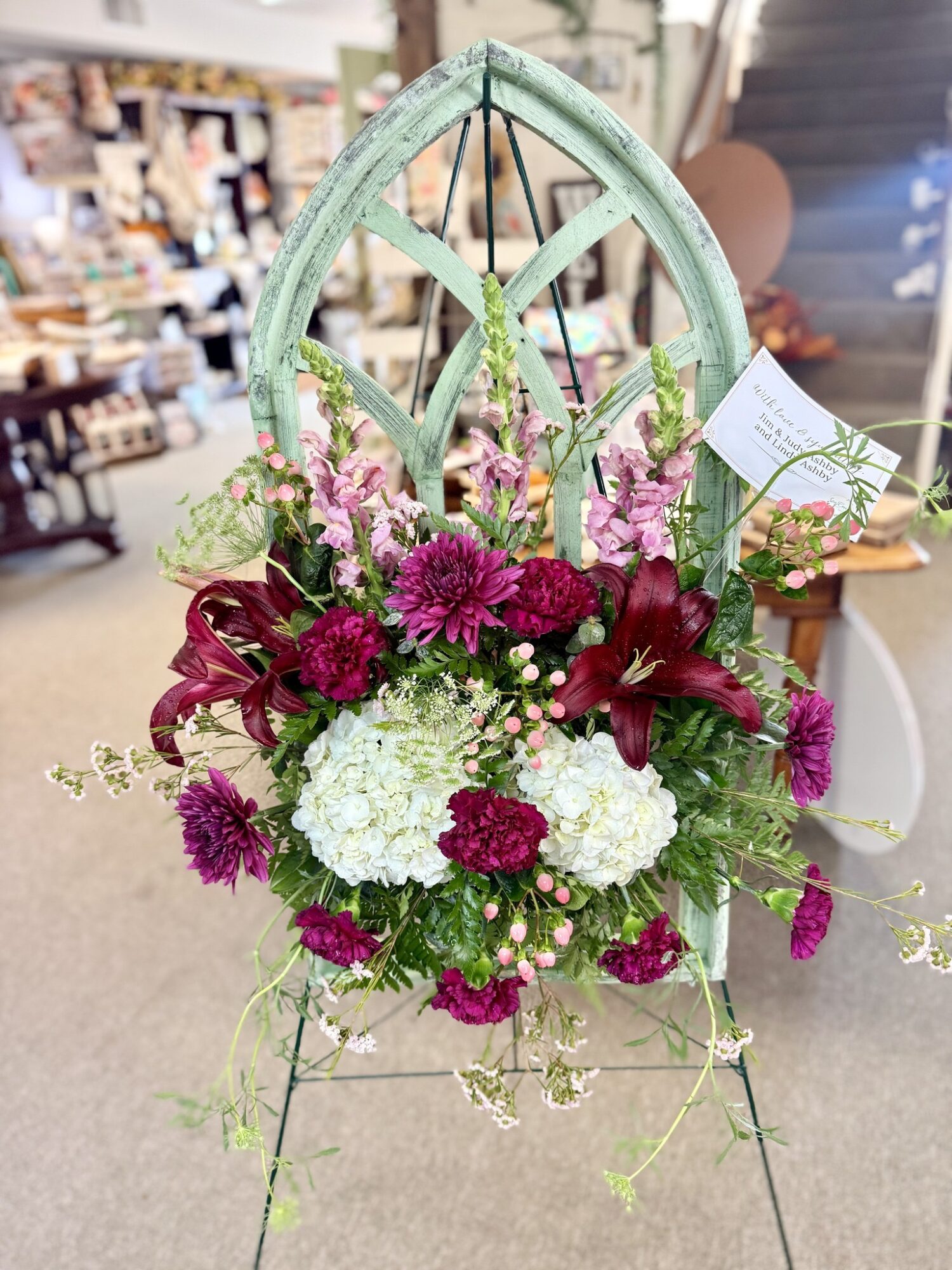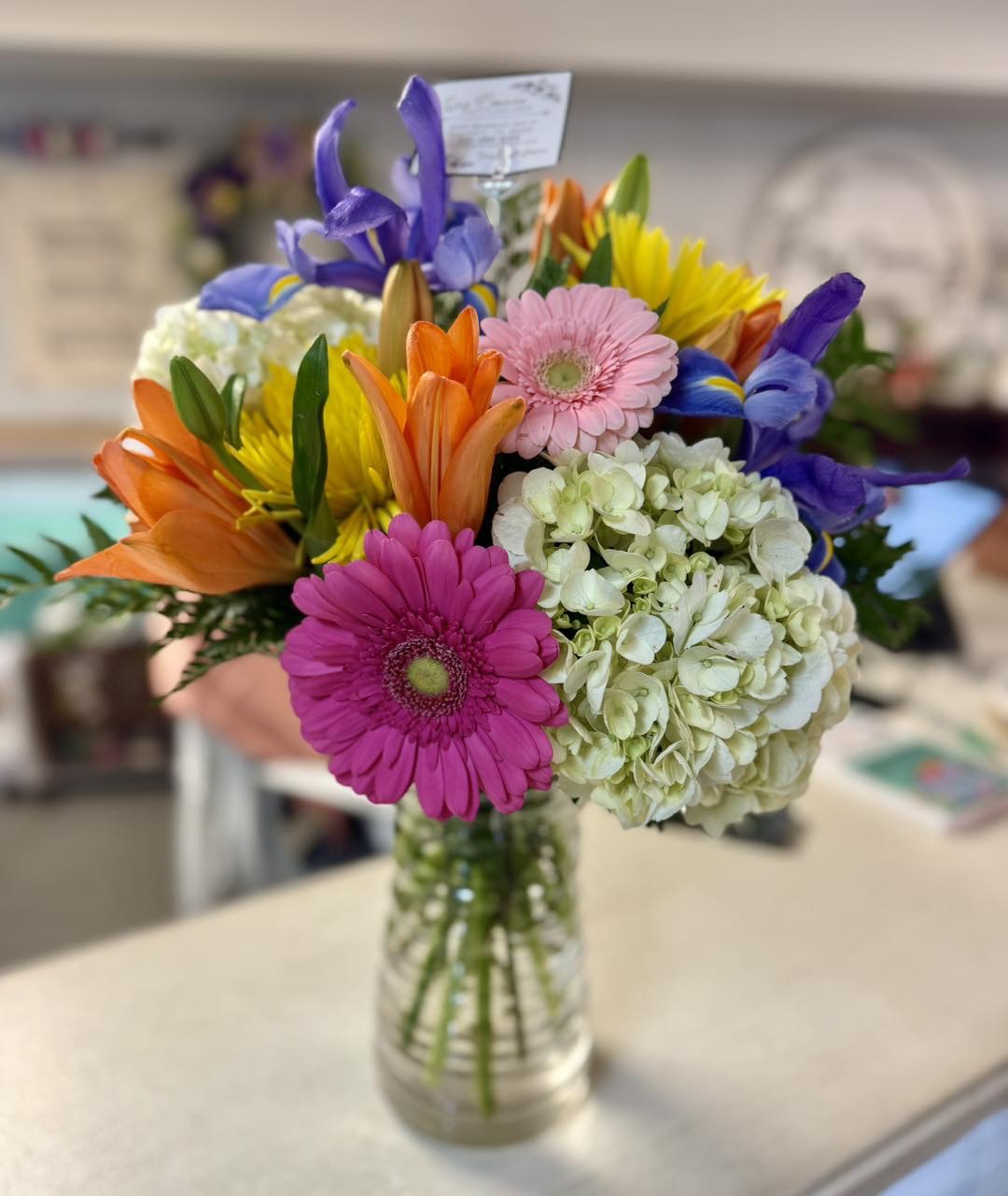 Around here, we like to say Taylor does the gifts, and Mom does the flowers— and boy, does she do some flowers! Mom is known for her one-of-a-kind arrangements and for how long her flowers last. Customers rave about them!