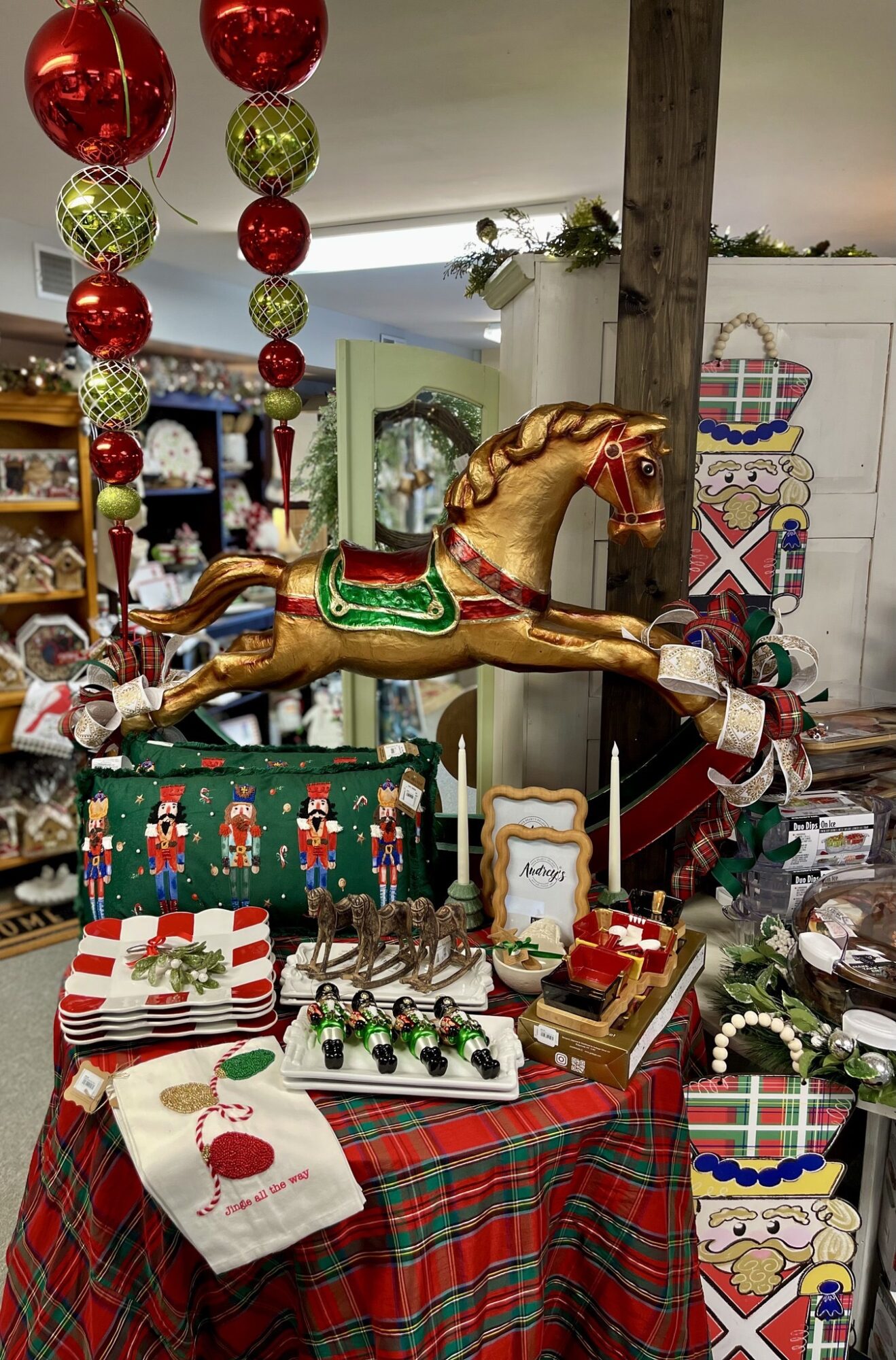 Seasonal décor is a big part of what we do, and Christmas is our favorite time of year. Each holiday season, the shoppe transforms into something straight out of a Hallmark movie— think multiple trees, ornaments galore, garland everywhere, and Christmas music playing nonstop.