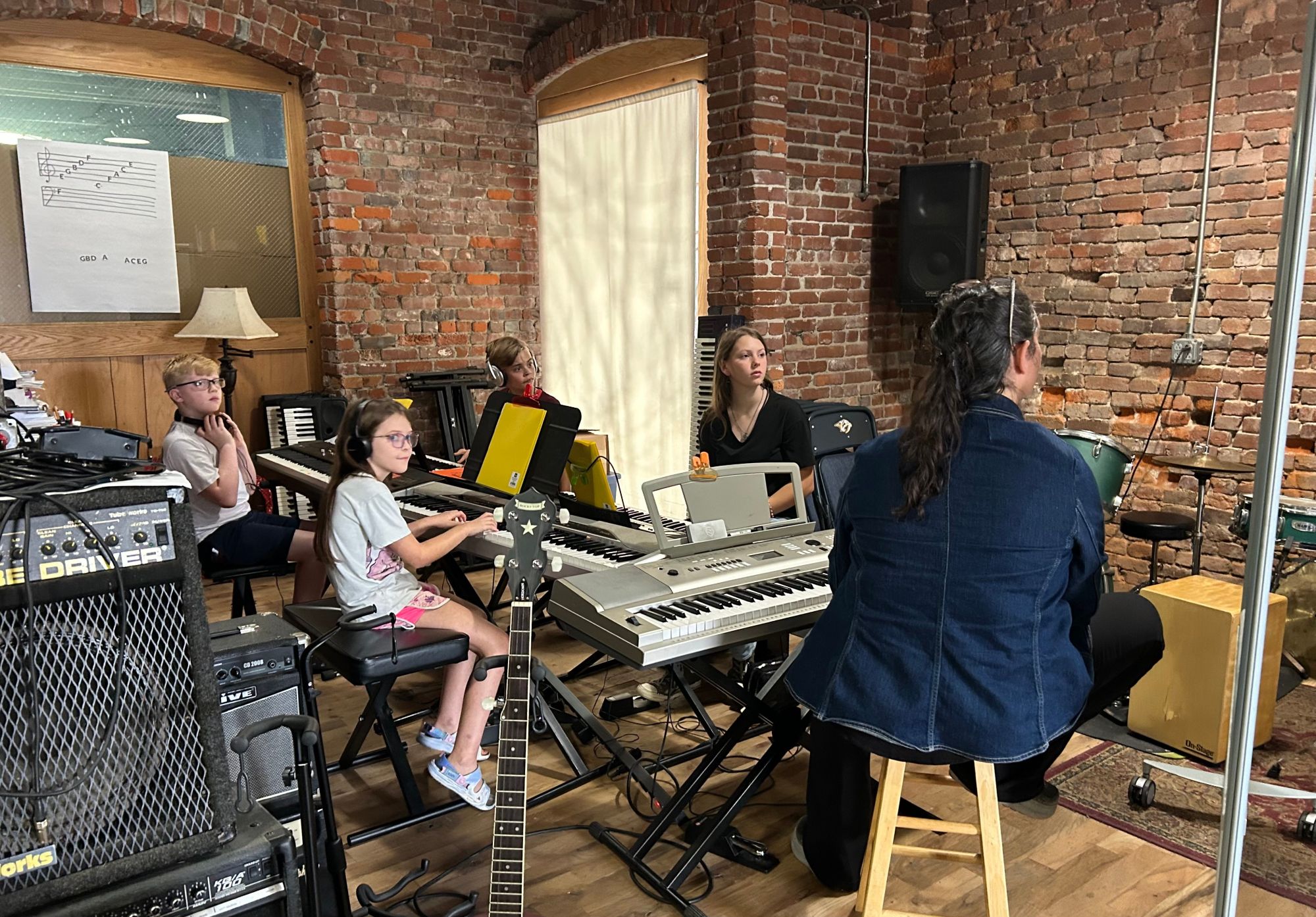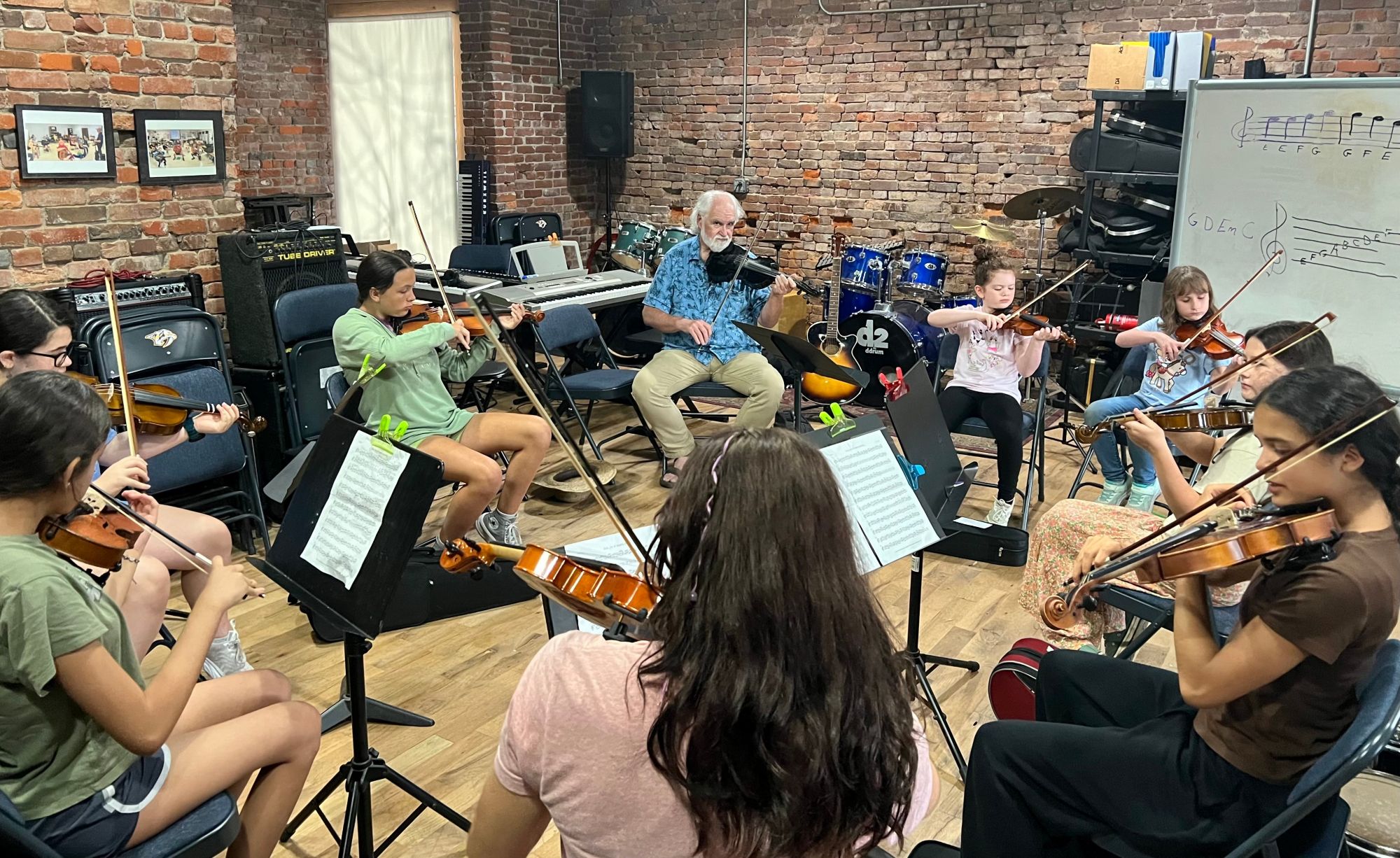 1) Weekly music classes. This is the entry point for all of our students. But we offer a continuum of programs as children develop skills and expand their interests. Class options may change throughout the year based on community response, but our standard curriculum includes guitar, keyboards, violin, drums, ukulele, banjo, vocal conditioning and audio engineering,