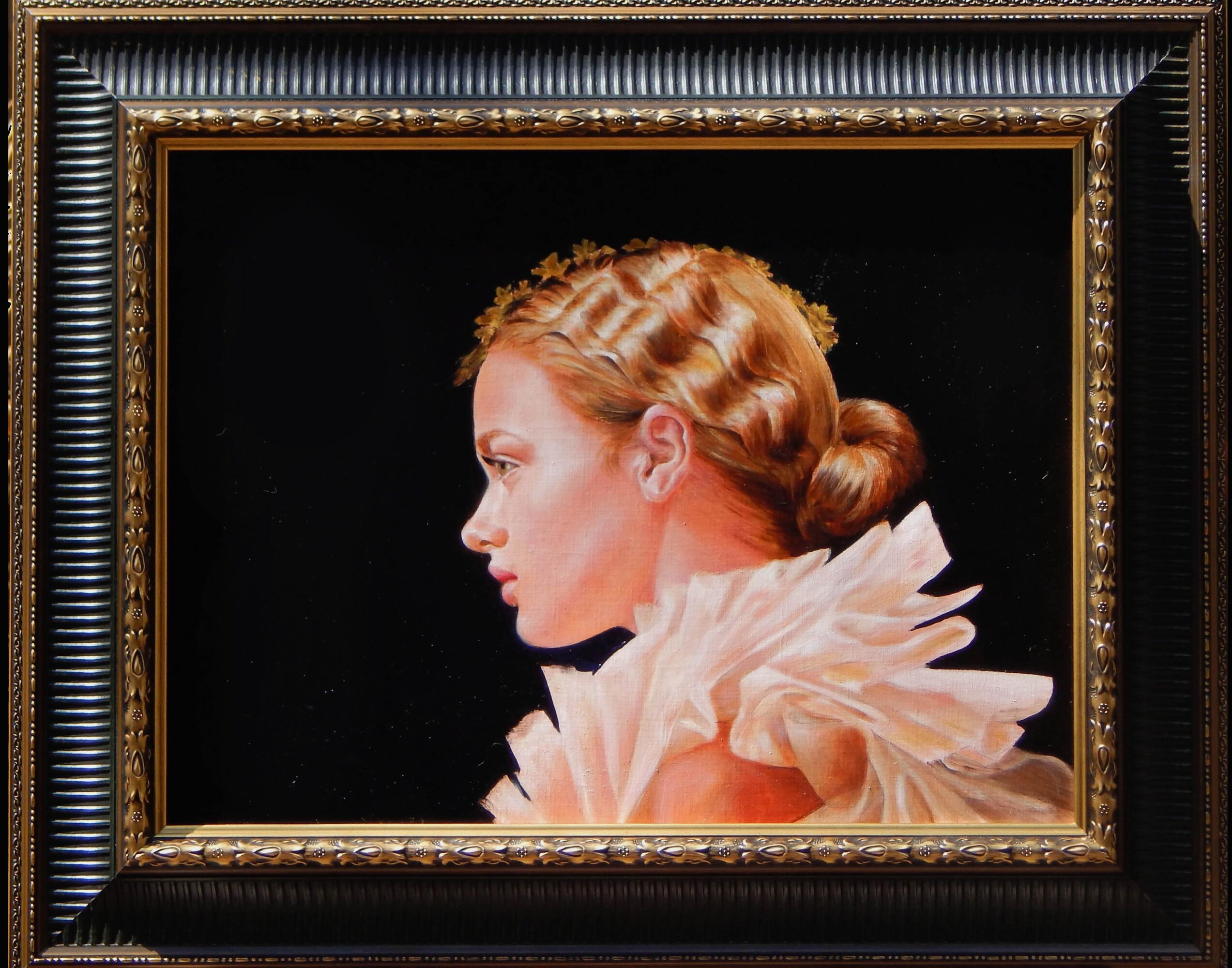 I began studying Old Master oil painting techniques at 12 in Brooklyn—layering translucent color over and over again until the skin seems to glow from within. Some of my paintings have dozens of layers, creating an ethereal patina.