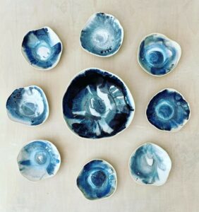 I started as a wheel thrower and now, I’m a hand builder using slab pinch and coil techniques to create one-of-a-kind organically shaped pieces.
