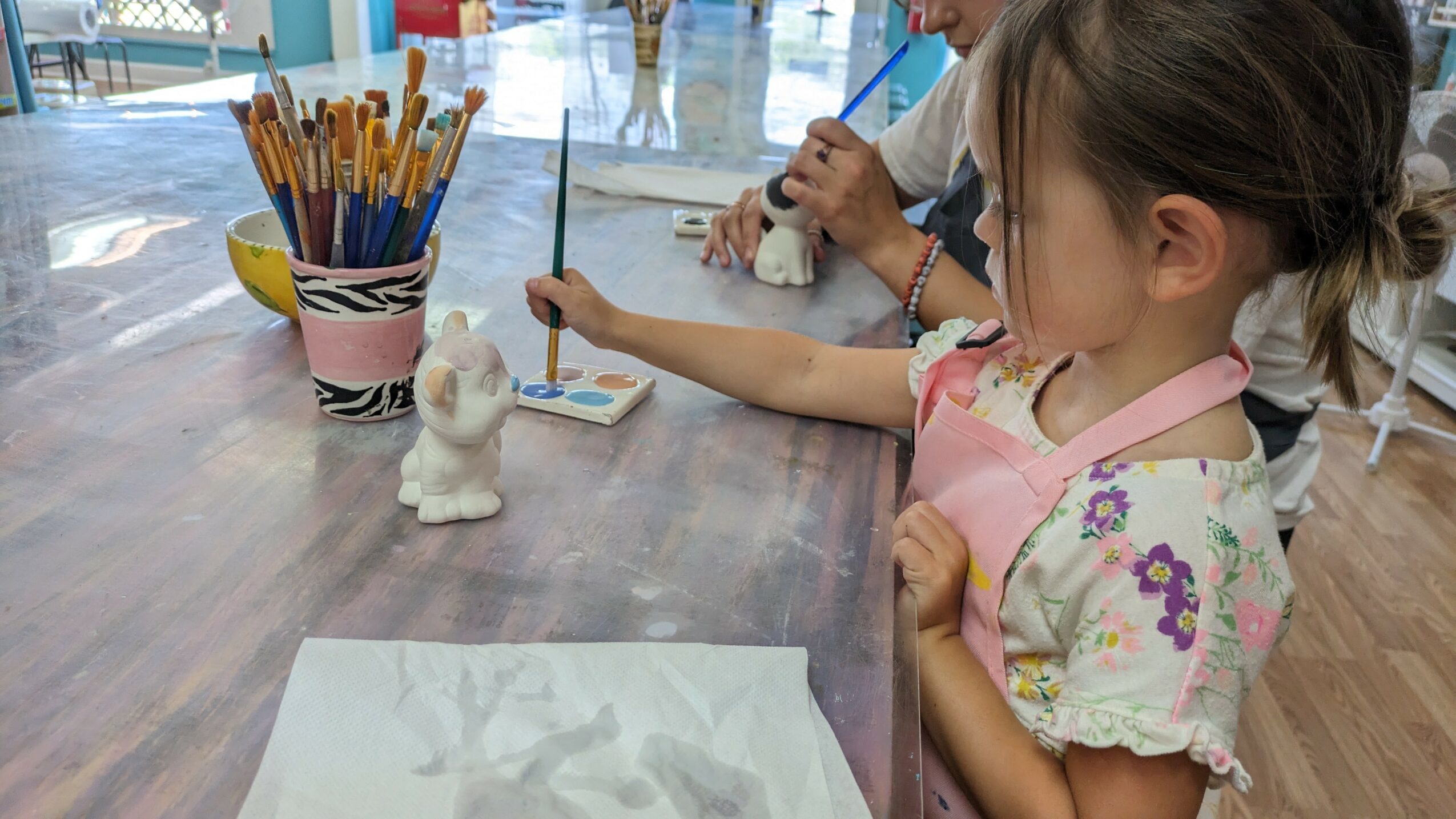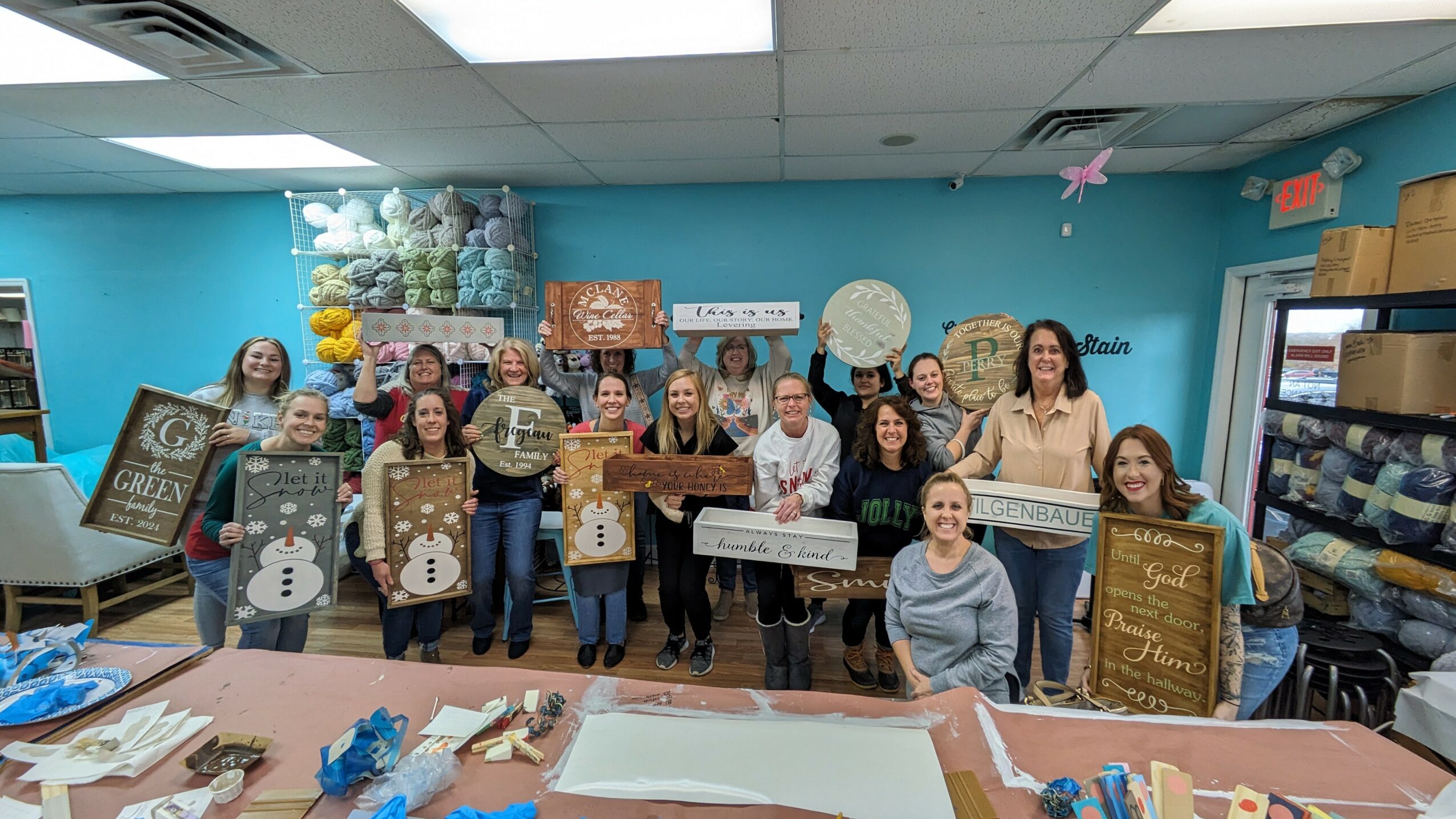 What started as just me has become a larger team of employees, countless workshops, summer art camps, kids classes, private parties, and so much more! Every day, I get to see people be creative whether it’s painting a new beautiful sign for their home, hand painting a new ceramic piece of art that we fire in the kiln, trying their hand in our splatter den, or joining us for a private party or workshop.