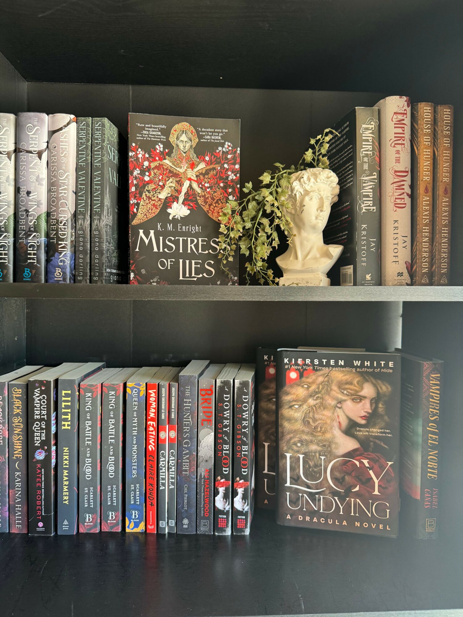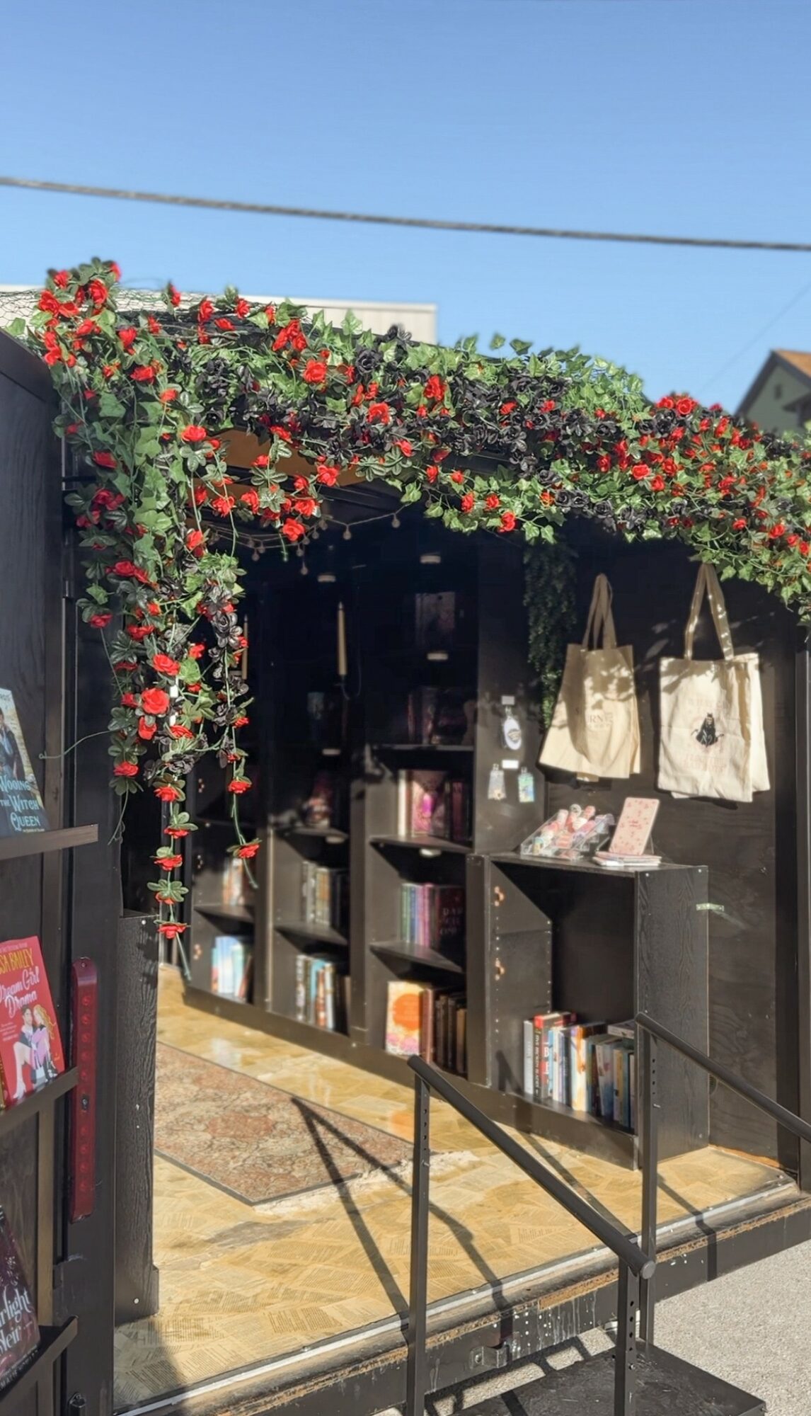 We are your typical romance bookshop, that’s Norma pink and bright colors and all about love. You’ll notice our shop is designed with a darker aesthetic! Think dark academia meets European bookshop.