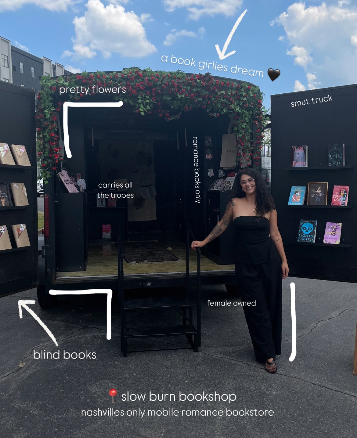 Slow Burn Bookshop is a mobile romance bookstore. We are pop up based and set up shop in Nashville and the surrounding cities, like Clarksville , Gallatin even sometimes Kentucky!