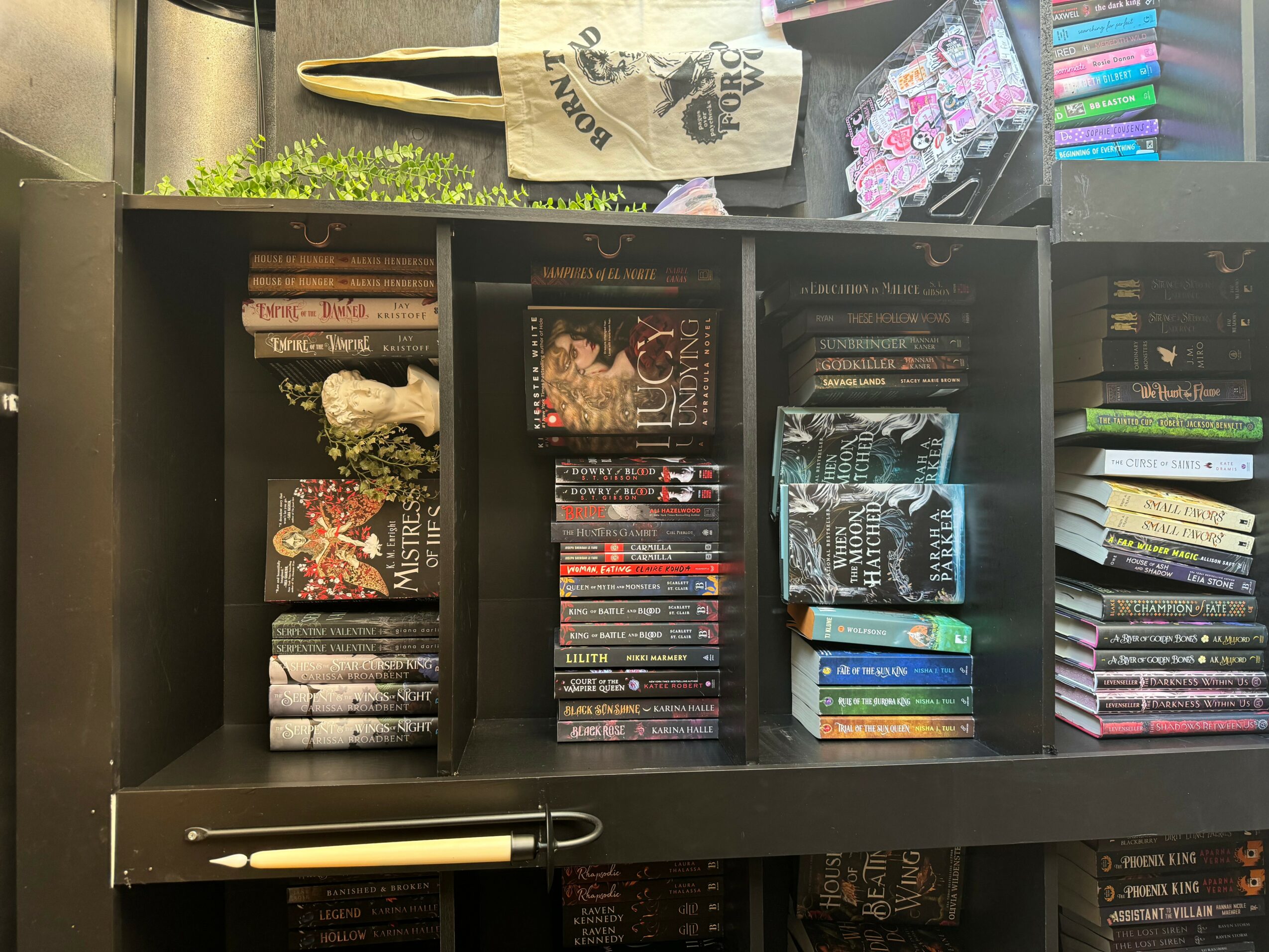 Our book selection (I may be biased) is unmatched in this area! I tend to stock a lot of indie authors and titles that you can’t just pick up at your local target. We love all the romance tropes over here. From dark romance, to romcoms, Romantasy to Horrormance, monster romance to straight smut, we have it all !