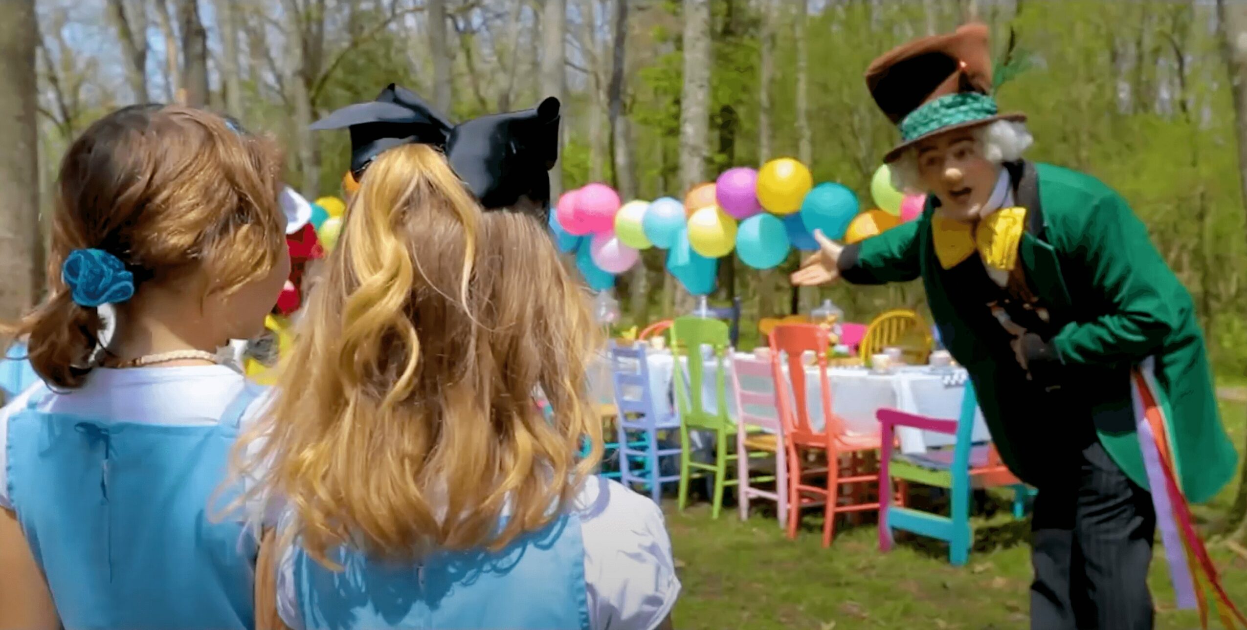 actors, Mad Hatter Tea Parties, inflatables, and festival games