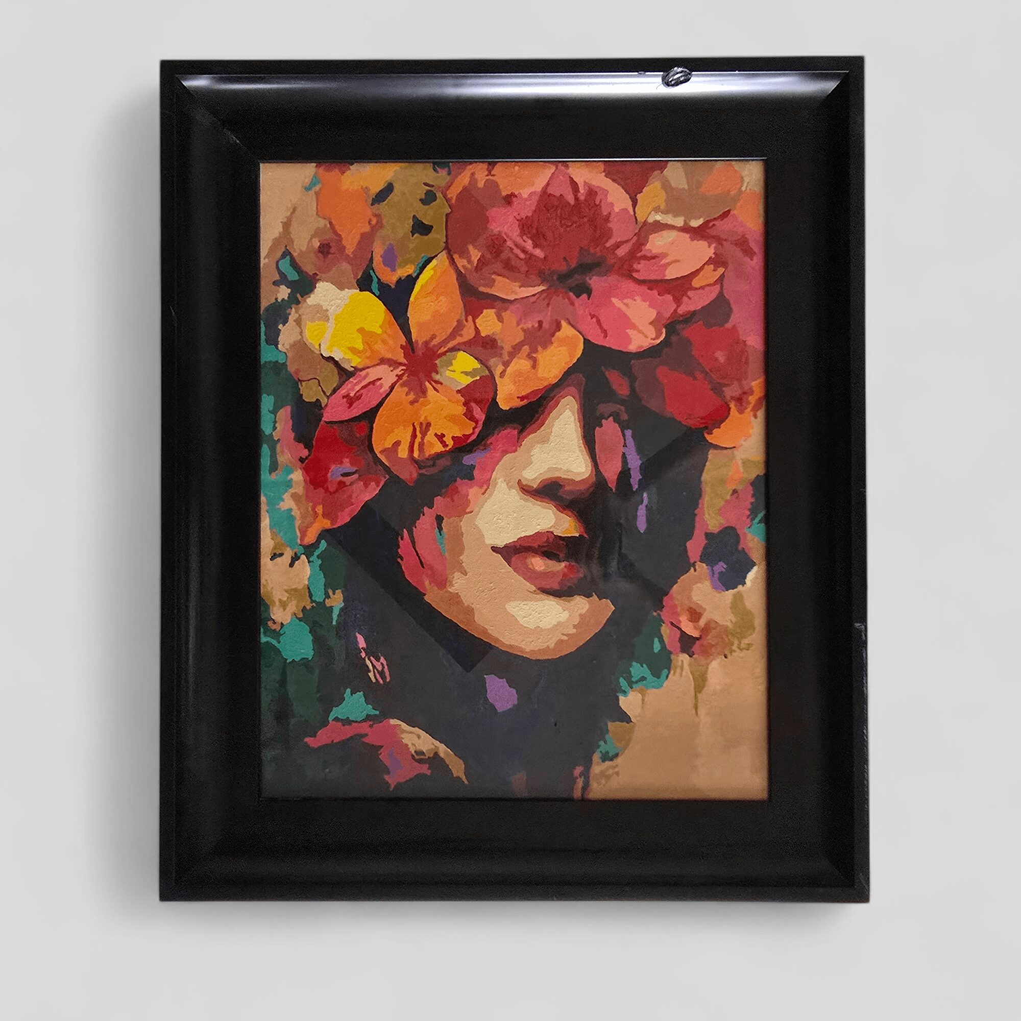 What I didn’t expect was to fall in love with the quiet rhythm of the brush in my hand, the way it moved like it already knew what I needed. I stopped following the rules almost immediately, coloring outside the lines as if I were rewriting my own story. Time seemed to slow, softening around me. I felt present. Like I had stumbled into a part of myself that had been waiting to be found. When I finished, I stepped back and stared at what I had created: bright flowers blooming across half a woman’s face, rising from the silence of a once blank canvas. Something shifted in me, something I still can’t quite explain.