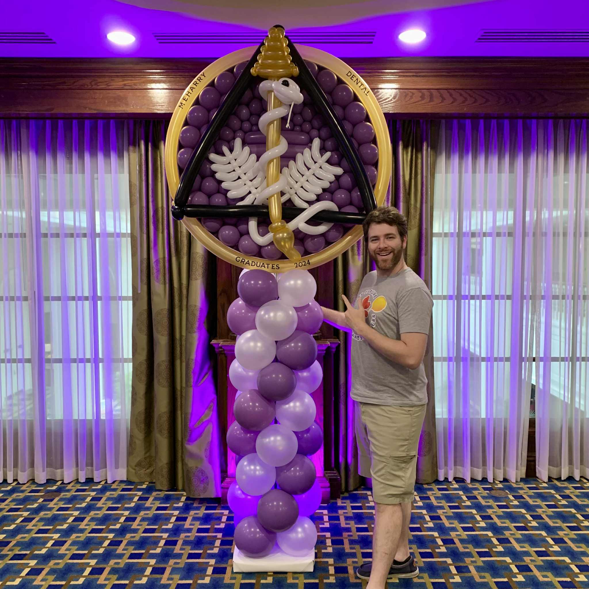 I specialize in Balloon Twisting and Balloon Decor. We can create anything out of balloons! I am most proud of my large competition sculpture we did at Balloon Convention Twist & Shout 2025 in Atlanta, Georgia. My wife and I created a 9 foot tall panda bear eating ramen noodles. She pretty much inflated and tied all the balloons used in the sculpture, and I put everything together! We used between 900-1,000 balloons to complete the sculpture, and it won 1st place in the large sculpture category. I was also awarded the title of “Top Twister of 2025” by receiving the most overall votes in small, medium, and large sculpture categories.