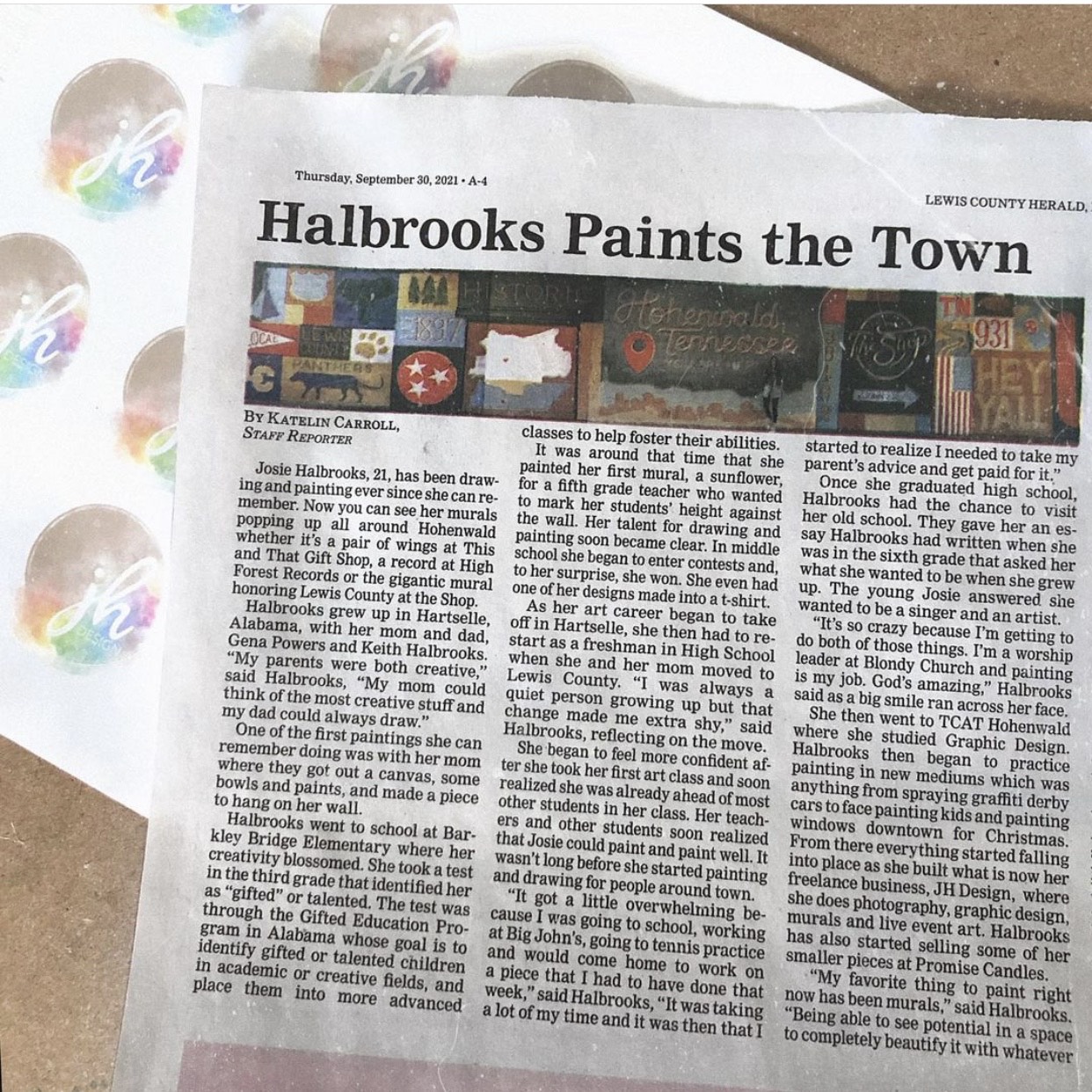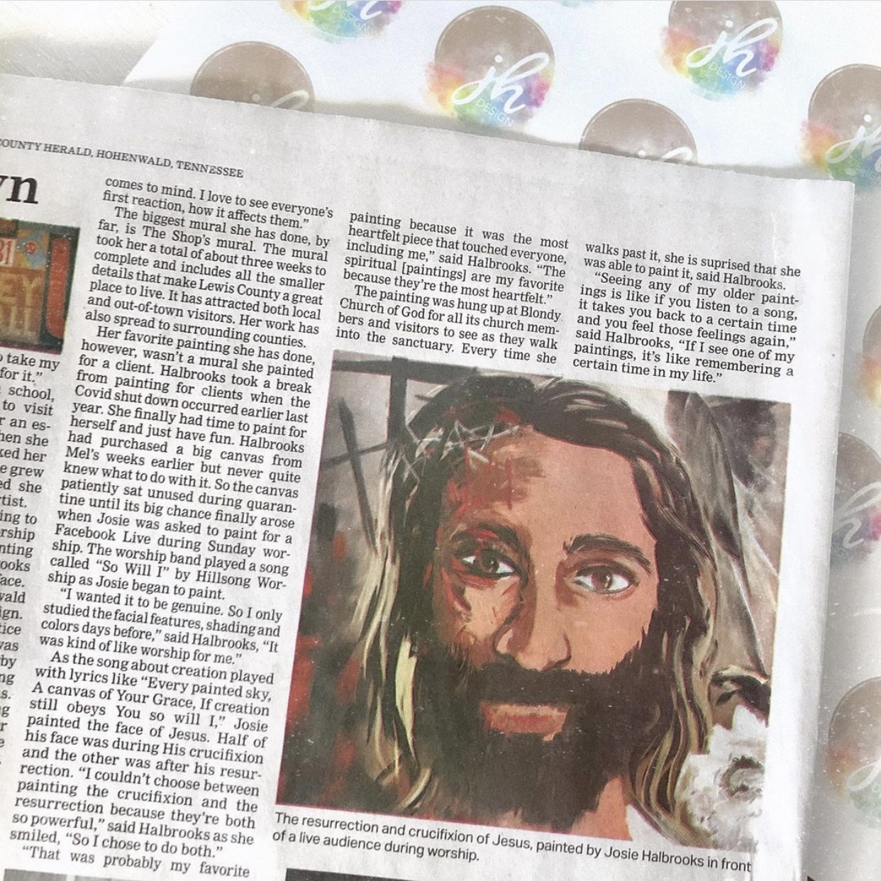 In high school, softball wasn’t able to be carried with me, so I began playing tennis instead. I still had talent shows and joined choir but I focused more on an artistic career since it seemed to be most realistic. I took an elective at TCAT Hohenwald my senior year and graduated for graphic design early in college. Since graduated, I began leading worship and have made all types of artwork for people. I never had to really advertise my work because word of small town mouth took care of that. I learned to price better for myself as I went.