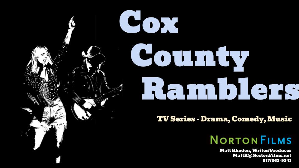 Cox County also became the setting for a TV series I’ve been developing, Cox County Ramblers, populated by feuding families, moonshiners, and musicians like Danny Joe MacAllister and Sue Ellen Lubeck who wander the hills, playing Mountain Rock as they try to make peace between their feuding families.