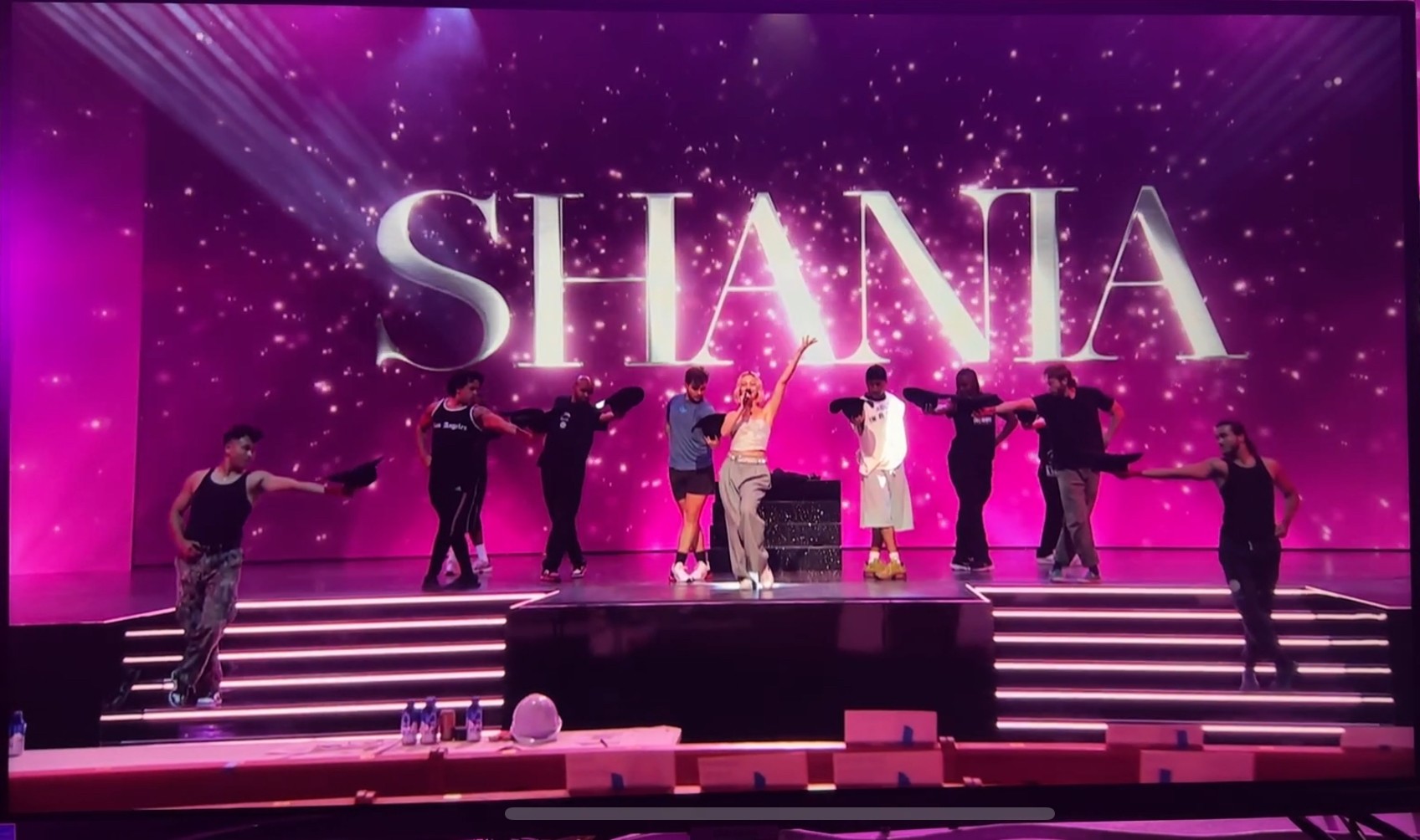 A normal day for me at the moment is rolling out of my bunk on a tour bus to see who else is awake. Then I wrestle my clothes on in a tiny bus bathroom, grab my suitcase and go adventuring to find my dressing room in a venue I’ve never seen before. Once I’m in my dressing room I’ll shower, wander around till I find catering and then hopefully do a workout with the resistant bands my husband gave me. Then after hanging out for a few hours, we’ll go onstage for soundcheck and run our dance number with the band. After that, it’s showtime!