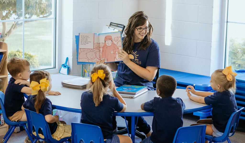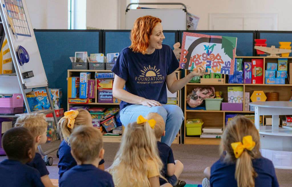 Rooted in faith. Growing in knowledge. Our motto is also our story. Jen and I both have a love for early childhood education and each served in K-2 public schools for ten years. The public school system taught us so much. Effective teacher training and many mentors along the way helped us both gain valuable skills and experience. I was serving my third year as an academic coach in a Title 1 school when we learned that our K-2 school was going to be closed and then reopened as a public preschool. Jen and I confided in each other about the stress of the upcoming transition, and I can remember saying, “If I’m going to have a new boss anyway, it might as well be me.” She shared her long-time dream of wanting to open her own preschool, and we decided then, “why not?” We knew when we began the arduous licensure process that Foundations Academy of Clarksville would be a place that focuses on quality over quantity. We are a lean operation. Jen and I are directors and teachers in the classrooms, which can be a lot to juggle, but the beauty of our arrangement is that together we can both bear the burdens of running our own business without letting go of our real passion–teaching kids. From the beginning our goal was that Foundations would offer the Clarksville community a high-quality program that enriches children with Christian values and a strong academic start. We feel that teaching a child to read opens the world to them. At Foundations we balance research-based instructional strategies with a loving and structured environment. When families tour, they are often surprised to see many of our three-year-old students are reading words, and many of our four and five-year olds are working in decodable reading books. We focus on the whole child, so students learn academic and spiritual skills along with social development. They learn to play together collaboratively, and speak in complete sentences. We focus on problem-solving and faith-based practices that include daily prayer and learning Bible stories. Some have said that what we do is like magic, but it’s really as simple as using the right teaching strategies consistently.