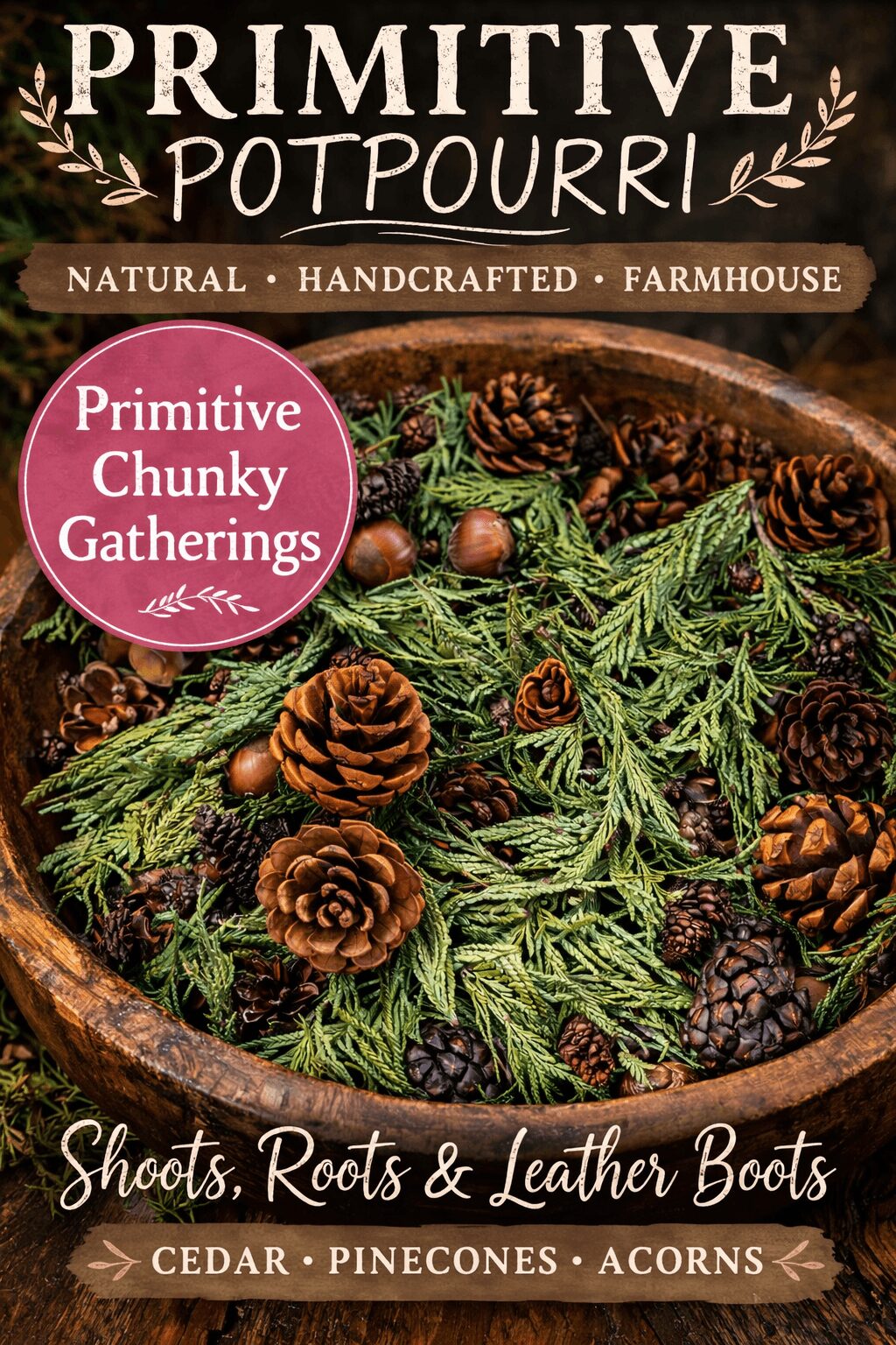 In recent years, I’ve felt called to return even more to the land itself—wildcrafting when possible and using natural elements like pinecones, cedar, herbs, and dried botanicals. There’s something special about gathering from nature and turning it into something that brings comfort into someone’s home.
