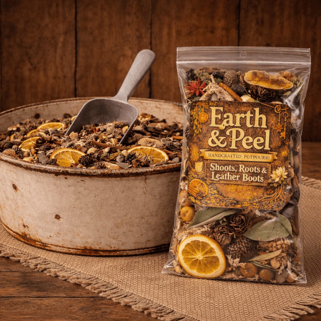 I’m a botanical artisan and the owner of Shoots, Roots & Leather Boots, where my son and I handcraft potpourri, simmer blends, wax melts, and other home fragrance products inspired by nature and old-world traditions. I specialize in creating rustic, nature-based scents using dried flowers, herbs, pinecones, woods, and botanicals. Many of my blends are inspired by the forest floor, warm kitchens, citrus peels, and the changing seasons. I’m especially passionate about incorporating wildcrafted elements whenever possible, because I believe there’s something truly special about bringing a piece of the land into someone’s home.